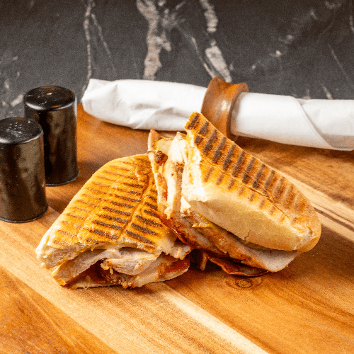 Ham, Swiss, sliced pork, pickles, and mustard on house-made Cuban bread