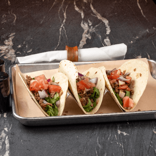 Three soft flour tortillas with lettuce, pico de gallo. CHOICE of ground beef, pulled pork or crispy chicken.