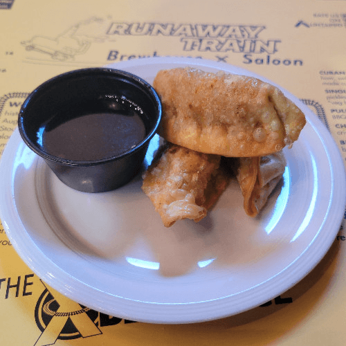 five crispy chicken potstickers served with ponzu dipping sauce